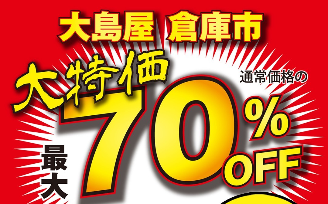 前回に引き続き、通常価格の最大70%以上割引でのご案内も予定しております!